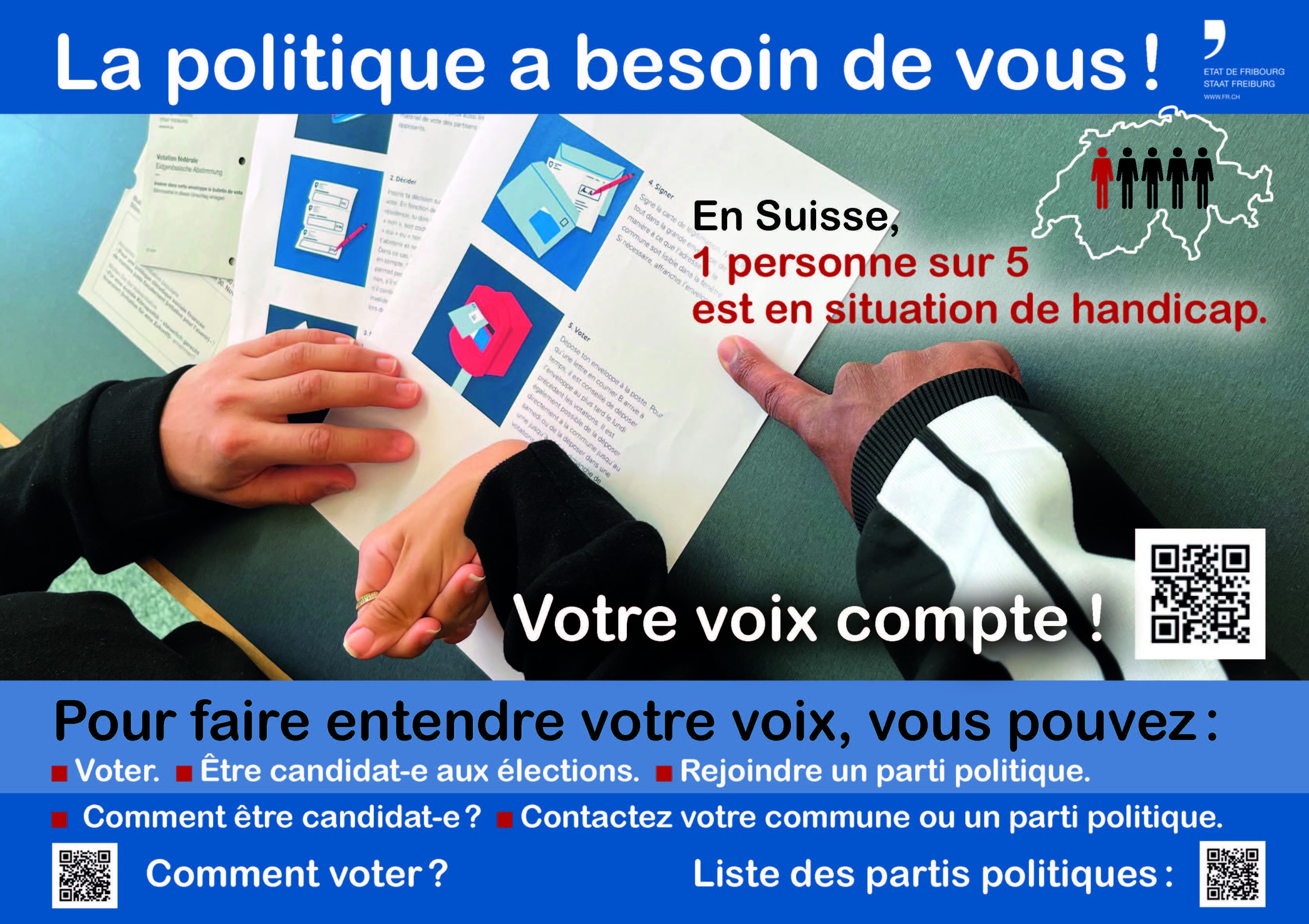 La Commune de Châtel-St-Denis encourage toutes les personnes, avec ou sans handicap, à exercer leur droit de vote et d’éligibilité.