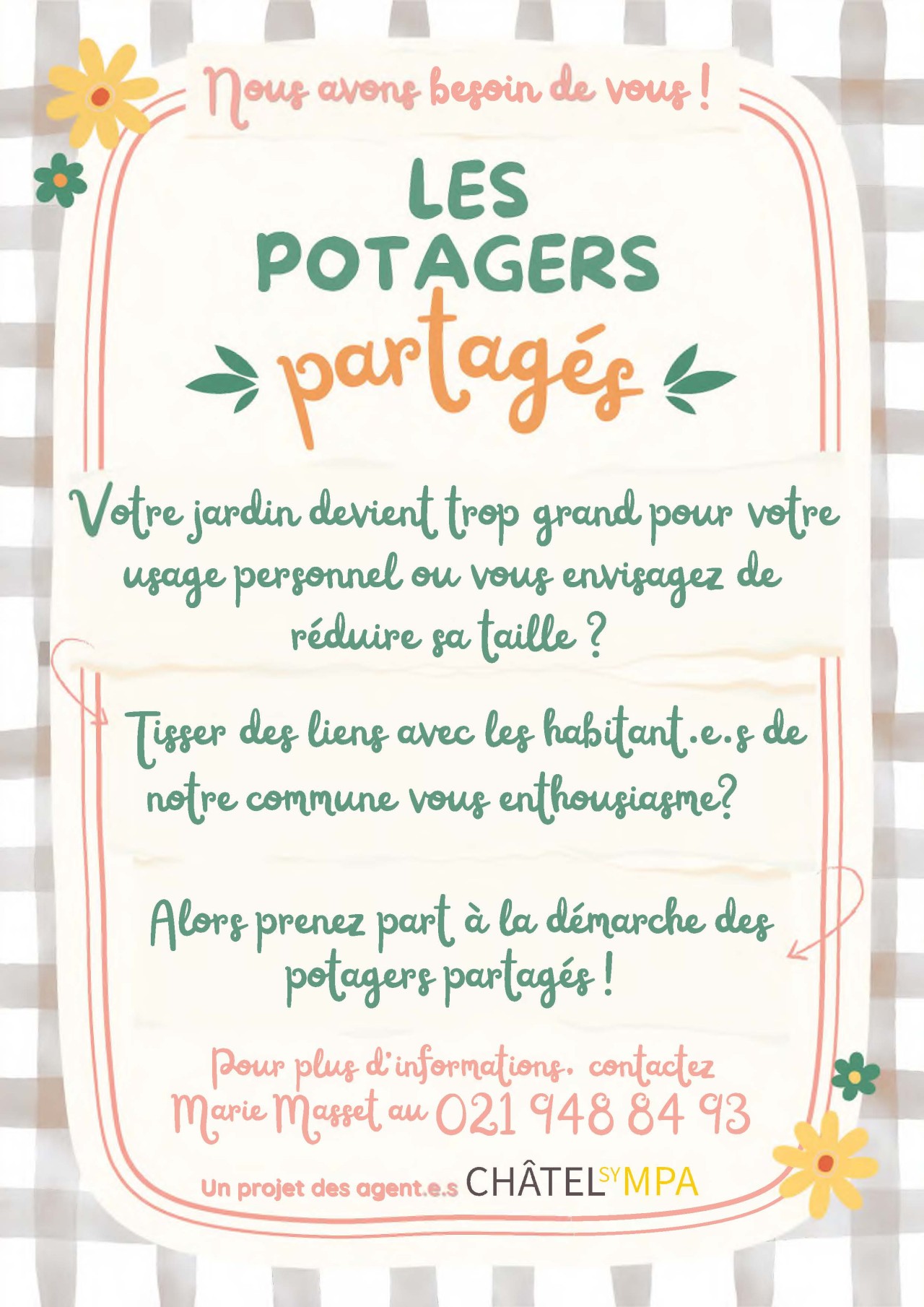 Les agents Châtel Sympa mettent en relation les habitant·e·s pour créer des potagers partagés. Objectif : favoriser le vivre-ensemble, partager ses connaissances et encourager la biodiversité.