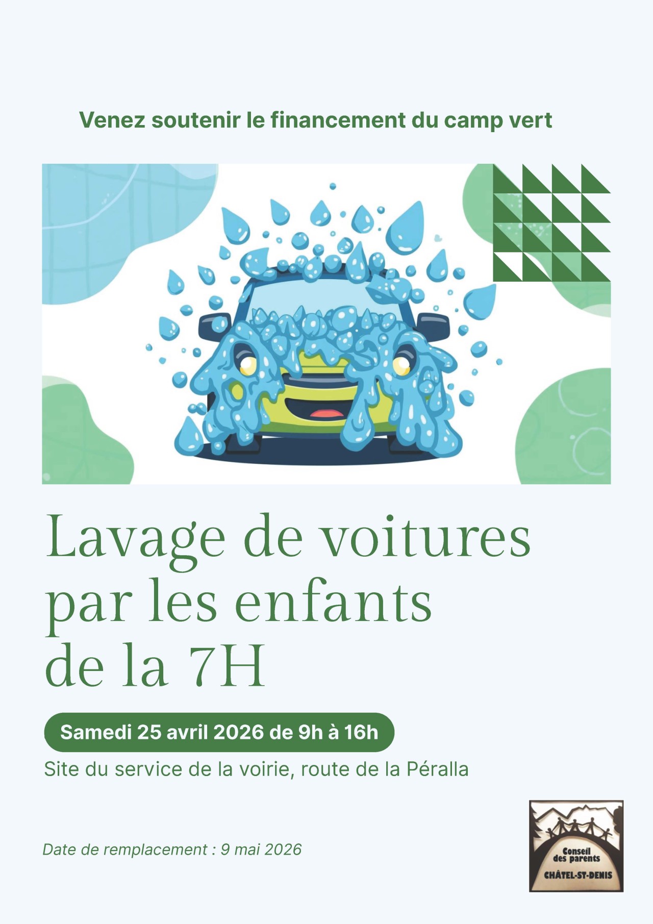 Les enfants de la 7H vous donnent rendez-vous pour un lavage de voitures afin de financer leur camp vert. Venez soutenir leur projet tout en offrant un petit coup d’éclat à votre véhicule.
