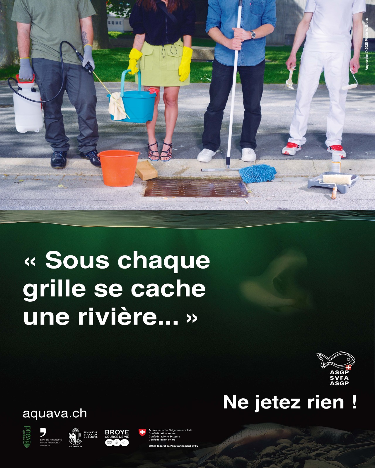 C’est pourquoi nous nous associons à la campagne « Sous chaque grille se cache une rivière » initiée par l’Association Suisse des Gardes-pêche.